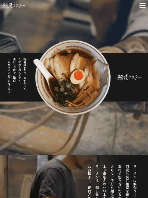 飲食店の「ラーメン屋」がテーマで、TOP・カテゴリー・記事ページの3ページ構成でシンプルなデザインです。