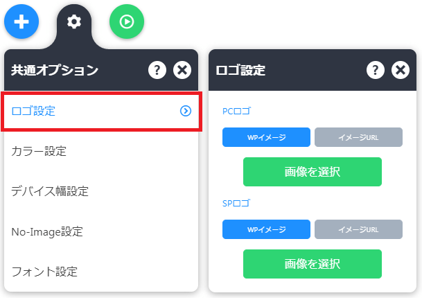 - ロゴ設定メニューが表示されたら、各ロゴを登録