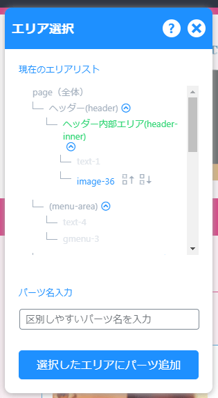 - 設置したいエリアを選択、位置調整(デザインで調整する場合もあります。)