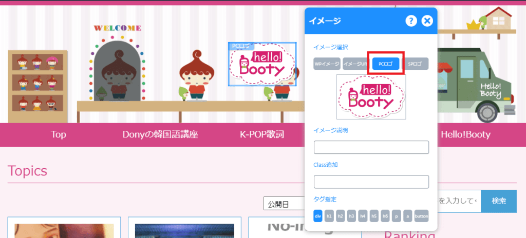 それでは登録したロゴをサイトに設置してみましょう!