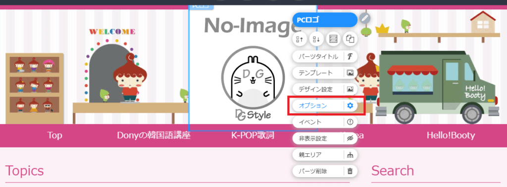 - 追加された「イメージパーツ」を「マウス右ボタン」でクリック