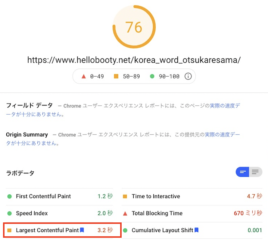LCPはページスピードの点数にも直結することがわかりますね。