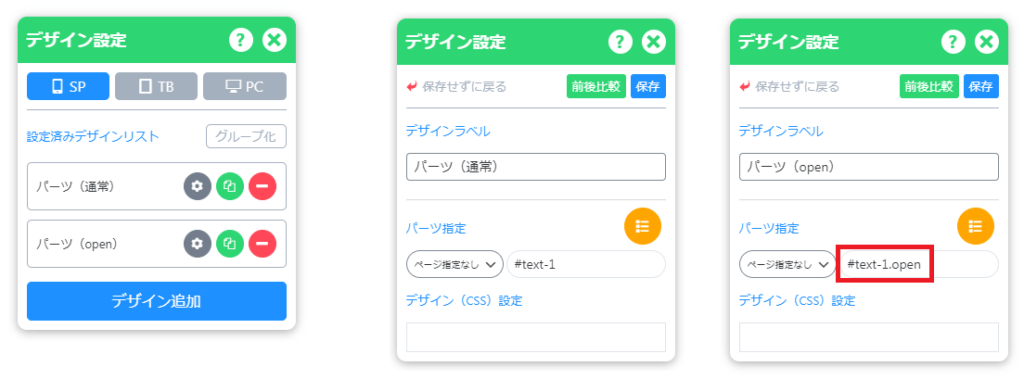 - 「通常(非表示)」と「open」のセレクターを持つ設定を追加する