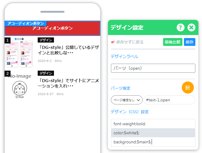 「DG-style」でアコーディオンコンテンツを作るには、大きく2パターンあります。