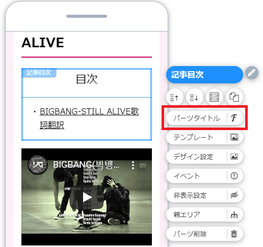 パーツタイトルを利用する場合、該当パーツにしか切り替えができないことから、デザインを1つでまとめられるメリットがあります。