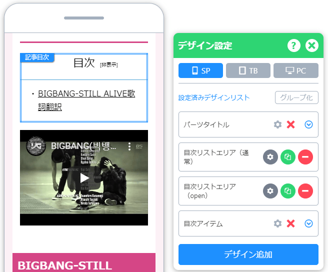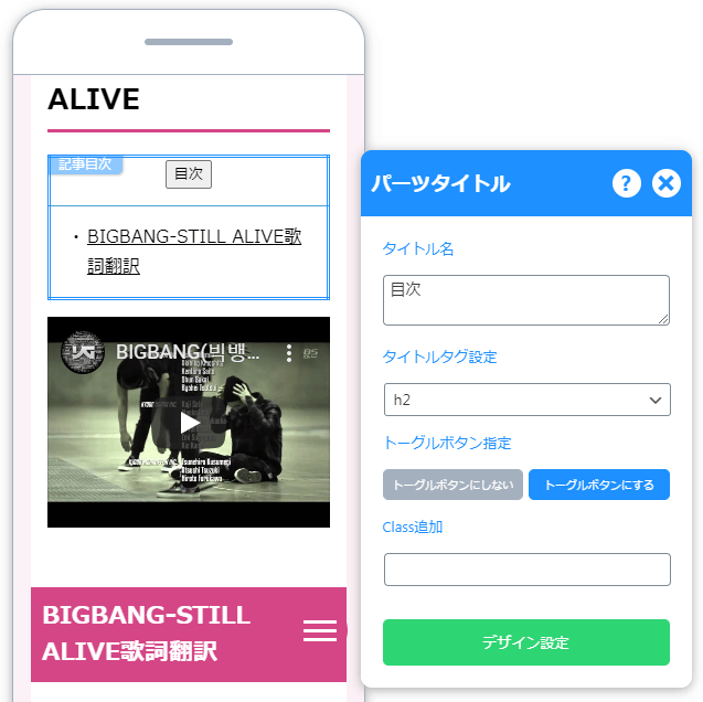 切り替えはデザイン設定で完成できます。ここでもまた2パターンあります。