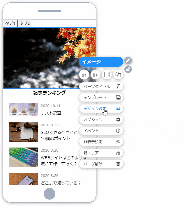 3. エリアメニューから「デザイン設定」をクリック
