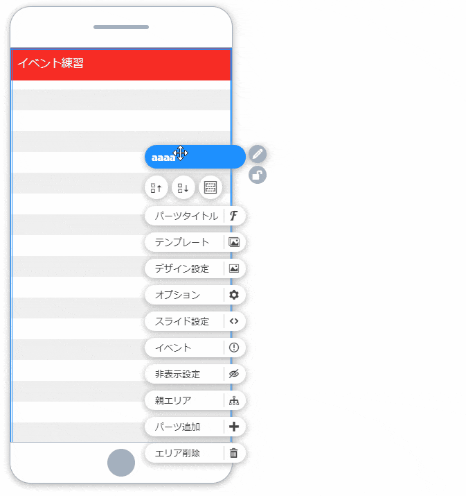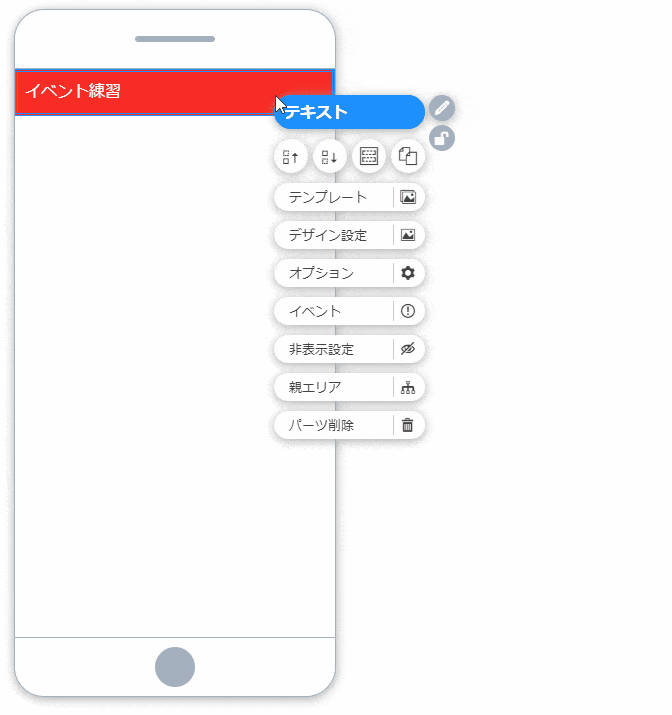 - イベントを設定したパーツを「マウス右ボタン」でクリック