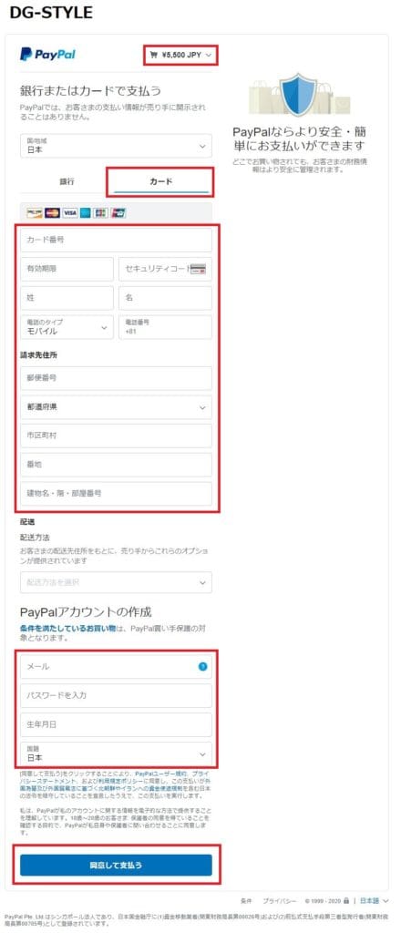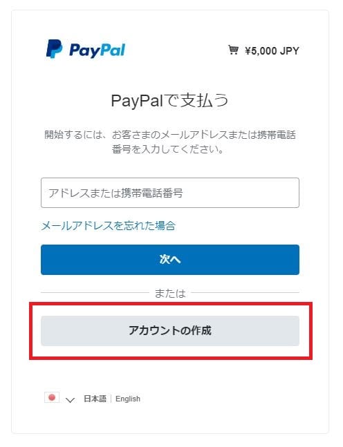 PaypalのIDがない場合の流れを紹介します。すでにPaypalIDを持っている方は「完了ページについて」をご覧ください。