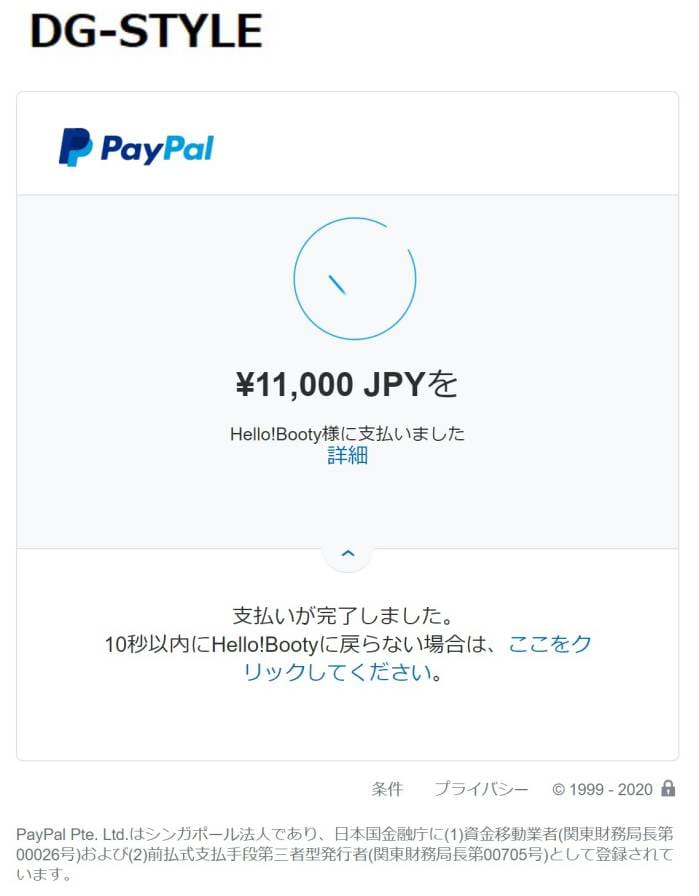 PaypalIDをすでにお持ちの方もここからは一緒ですが、上記イメージのように「Paypal支払い完了ページ」ではまだ処理が終わってません!