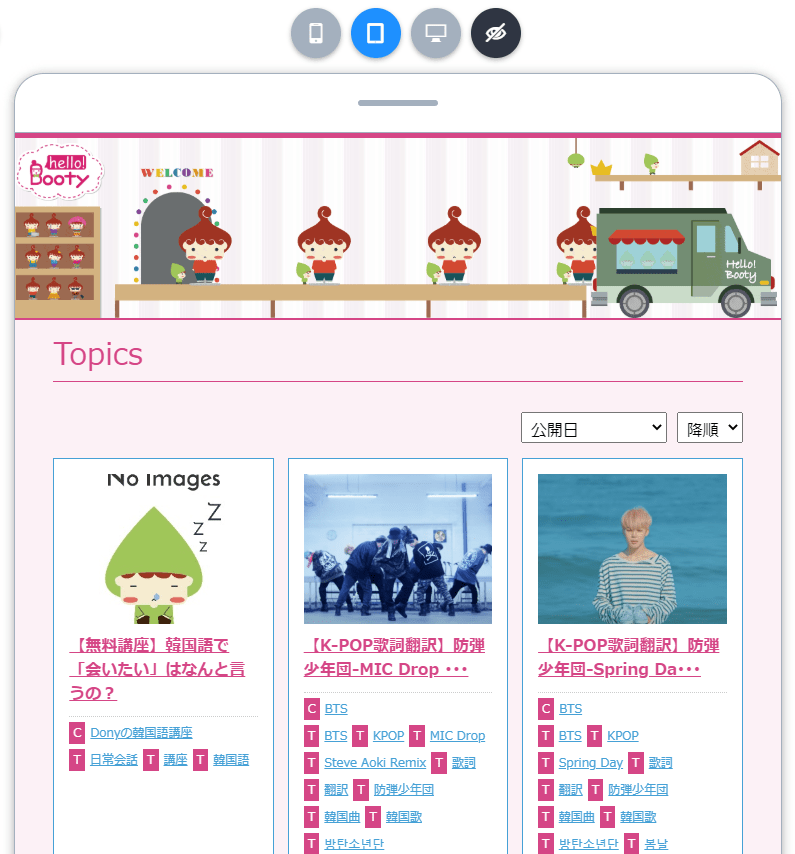 デバイスごとにデザインを変える方法は2つあります。順番に沿って説明します。