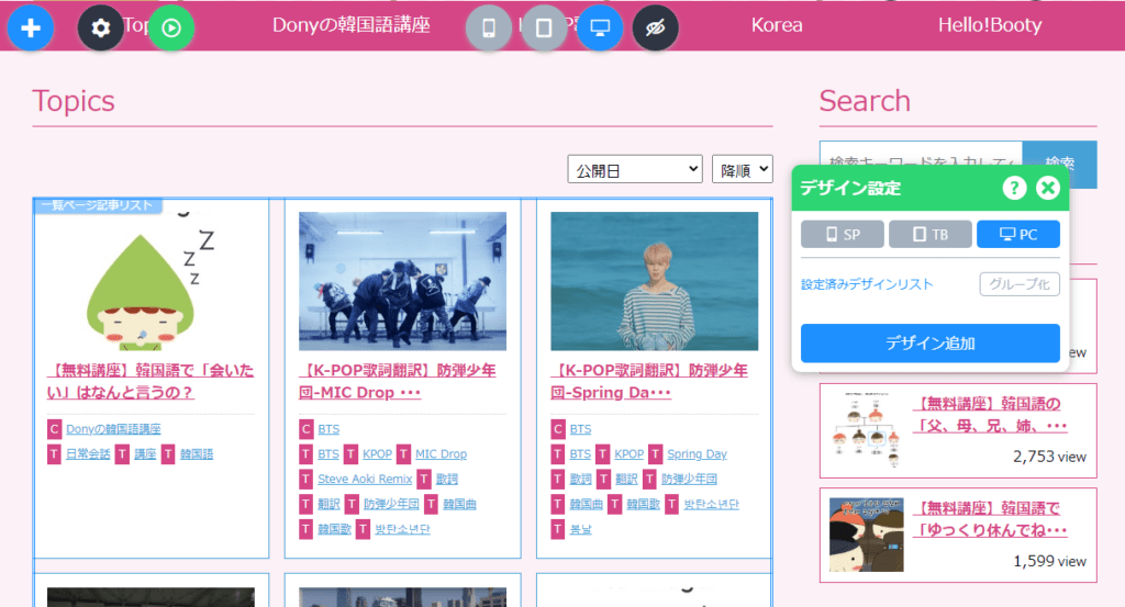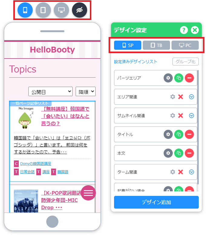 デザイン設定からデバイスごとデザインする