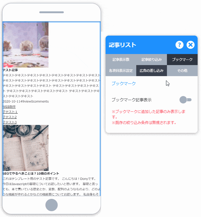 ※記事絞り込みの結果が1件なのに、2番目からを設定すると表示されないので注意してください