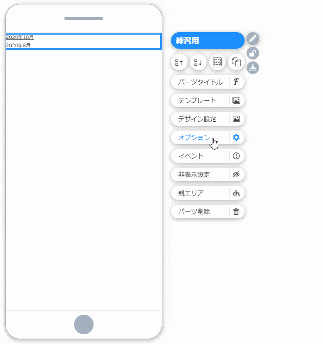 1クリックで、パーツのデザインを変えられるテンプレートメニューを開きます。簡単にデザインを変えたい場合に使います。