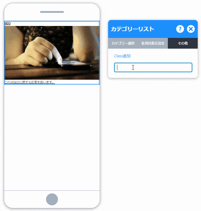 - 「Class追加」に追加したいClassを半角英字から始める「半角英数字、-、_」で入力