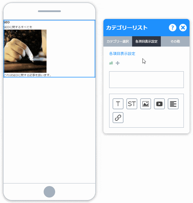 「カテゴリーリスト」パーツの概要