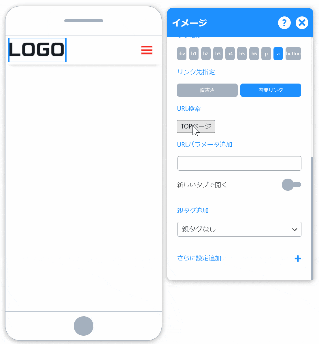 新しいタブで追加をONにすると、リンクをクリックしたらブラウザの新しいタブでリンクページを開きます。