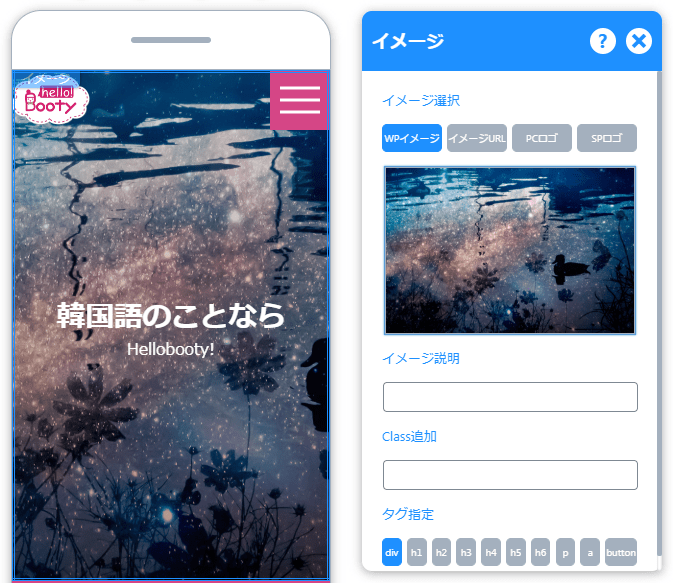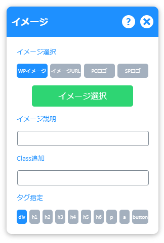- WPイメージ:Wordpressにアップロードしたイメージを使う