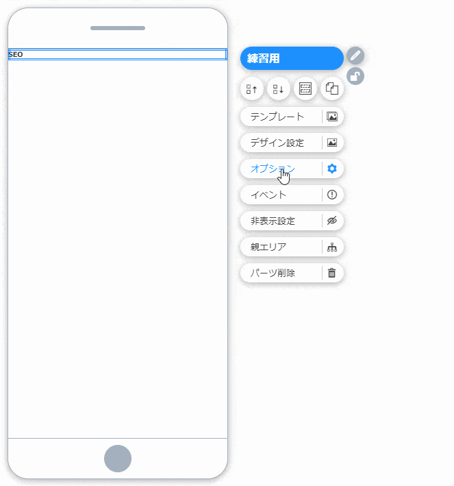 パーツの上下移動や属しているエリアを変えることができます。