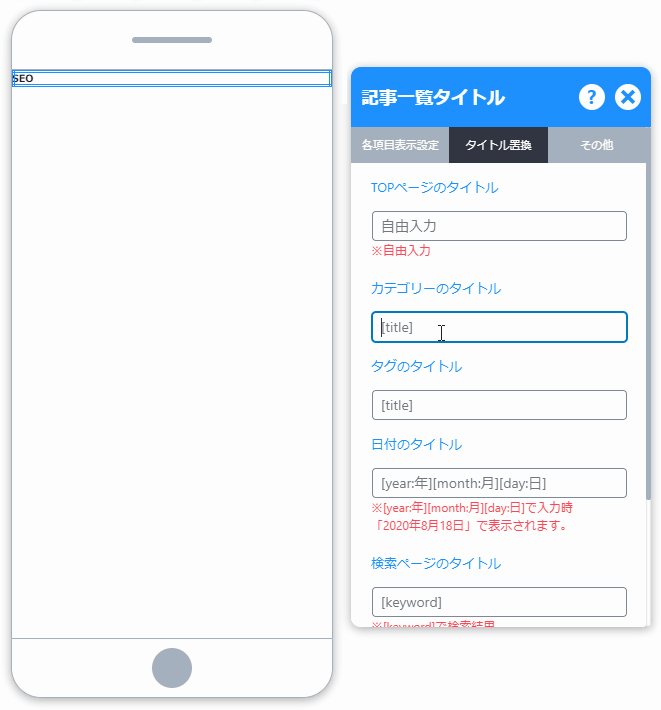 各タイトルの置換