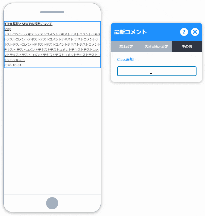 - 「Class追加」に追加したいClassを半角英字から始める「半角英数字、-、_」で入力