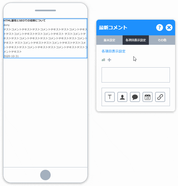 - 「最新コメント」を「マウス右ボタン」でクリック