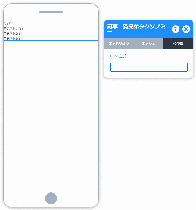 - パーツ追加から「一覧ページ兄弟タクソノミー」を選択