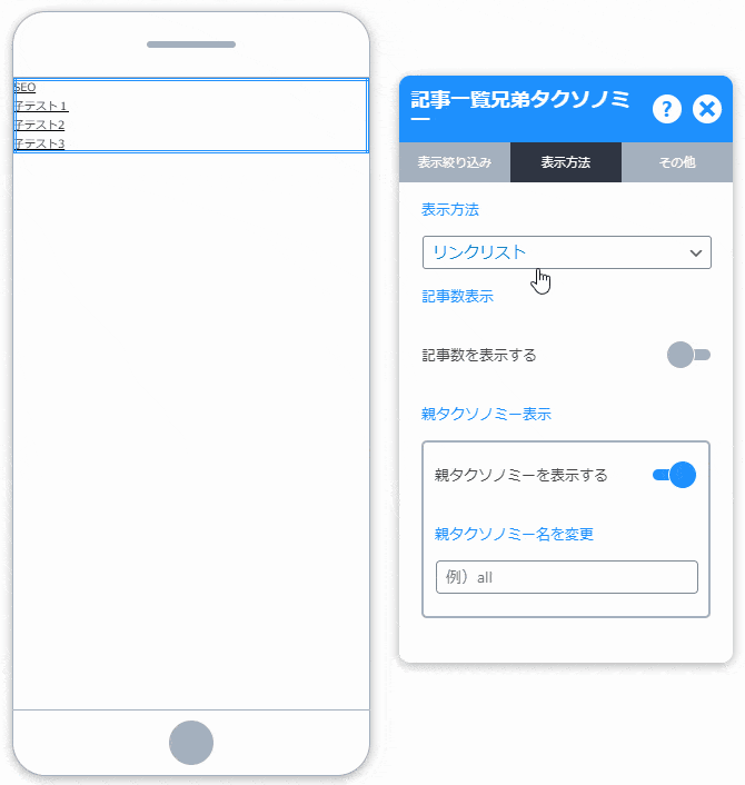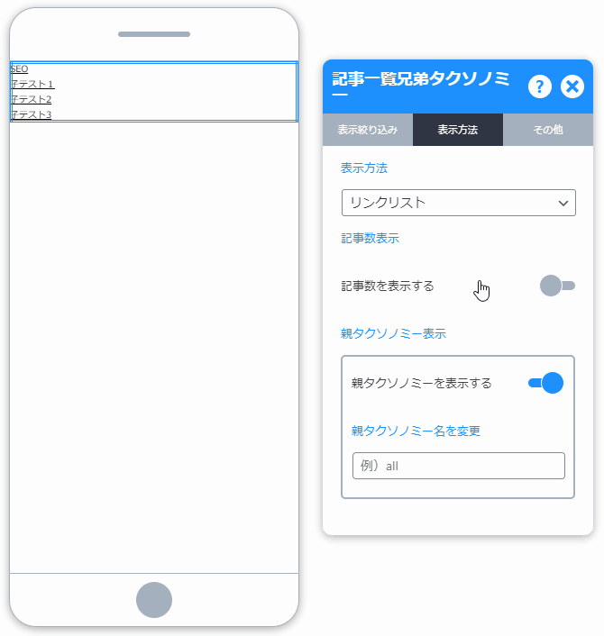 「一覧ページ兄弟タクソノミー」パーツ設定