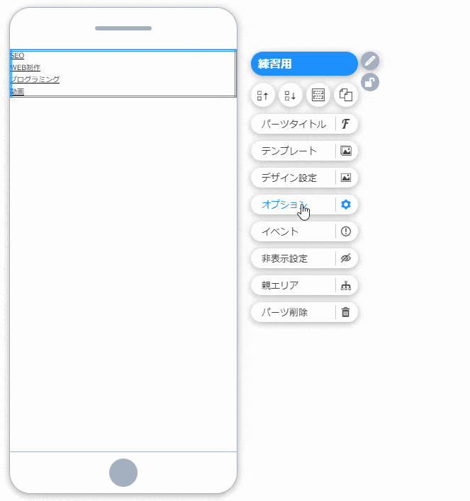 エリアにパーツを追加することで、選択ができなくなっても、エリアメニューを開きたい時に使います。