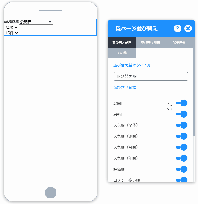 記事一覧(カテゴリーやタグなどのタクソノミー系)の記事リストを並び替えできるパーツです。