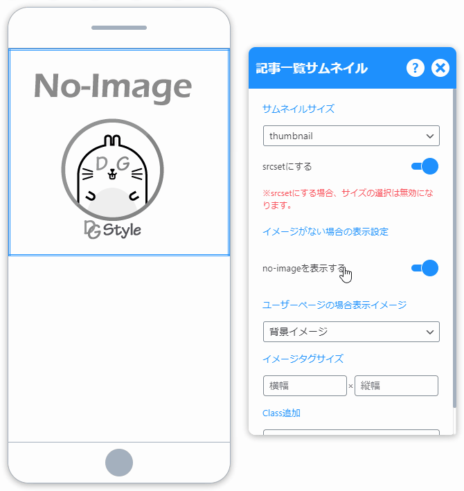 - 「ユーザーページの場合表示イメージ」から表示したいイメージを選択