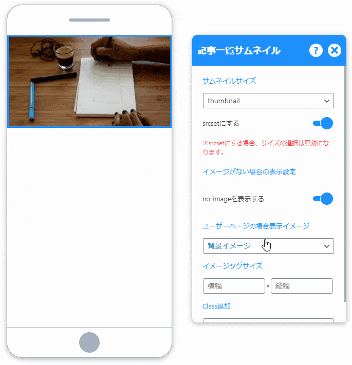 記事一覧(カテゴリーやタグなどのタクソノミー系、アカイブ系など)のサムネイルイメージを表示できるパーツです。