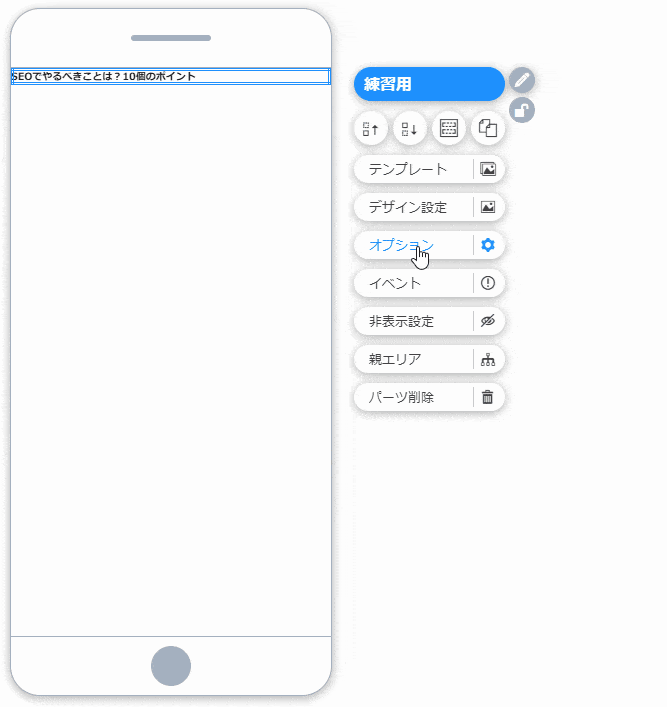 各パーツ専用のオプションメニューを開きます。上で詳しく説明しています。