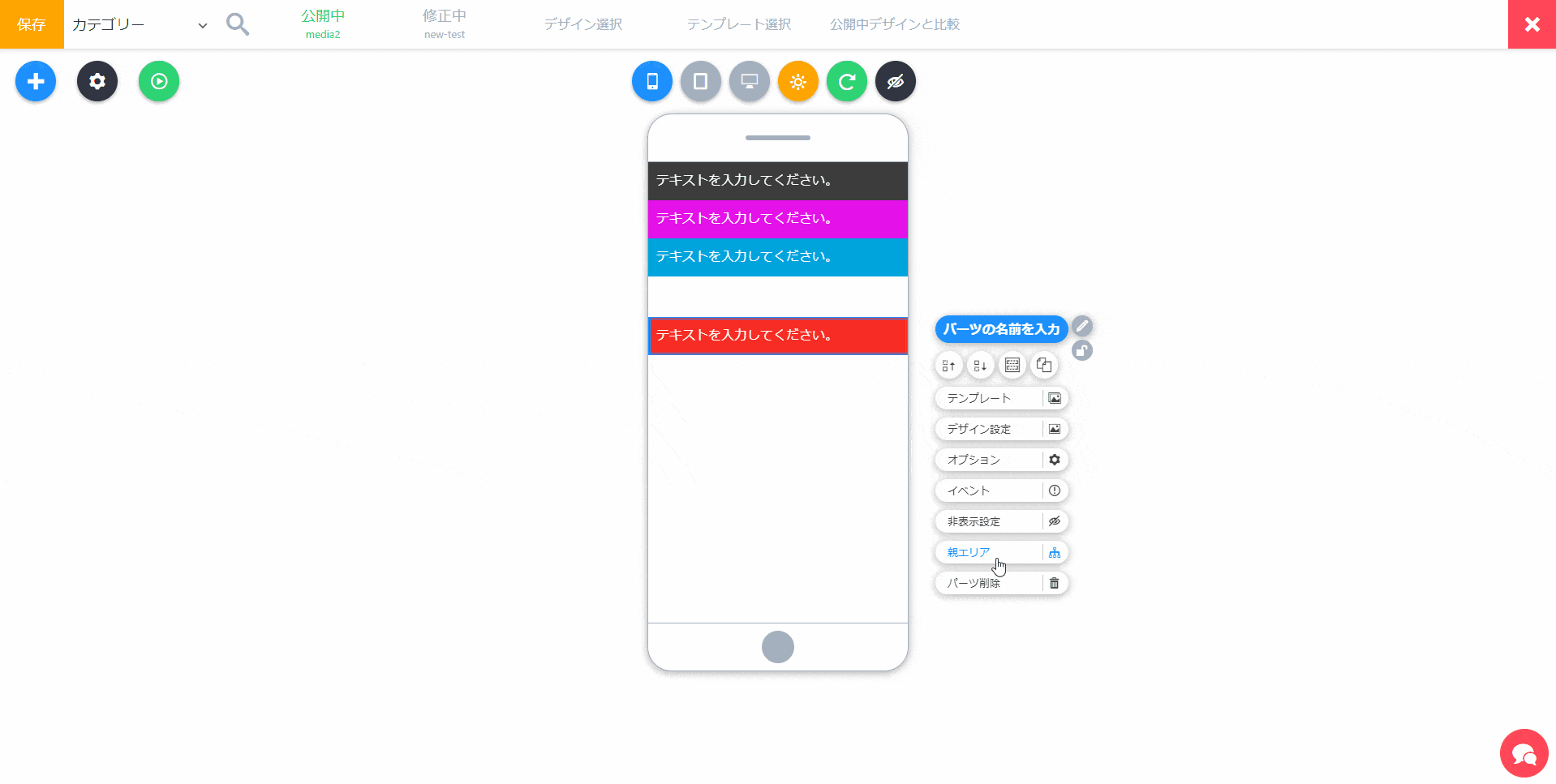 パーツの上下移動や属しているエリアを変えることができます。