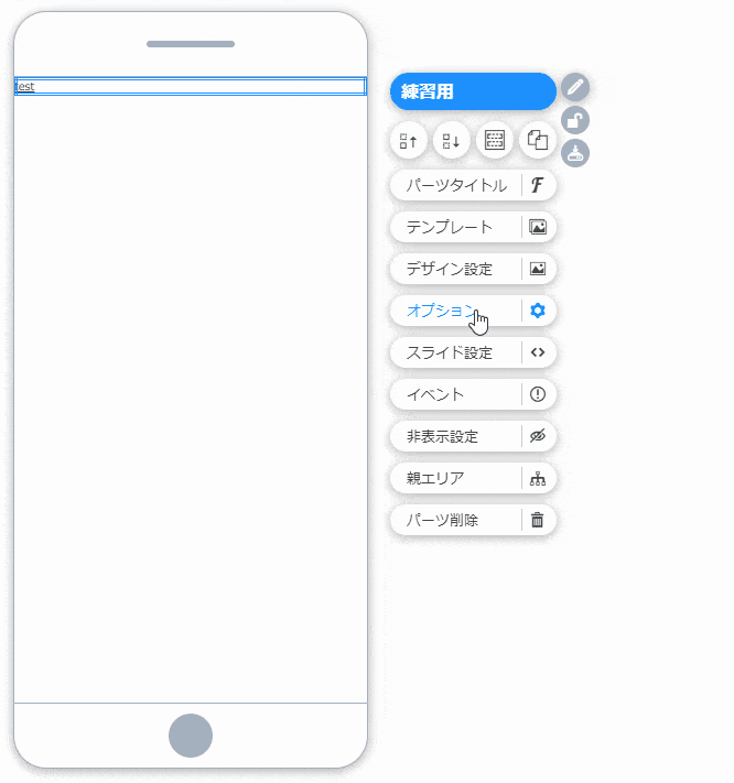 エリアにパーツを追加することで、選択ができなくなっても、エリアメニューを開きたい時に使います。