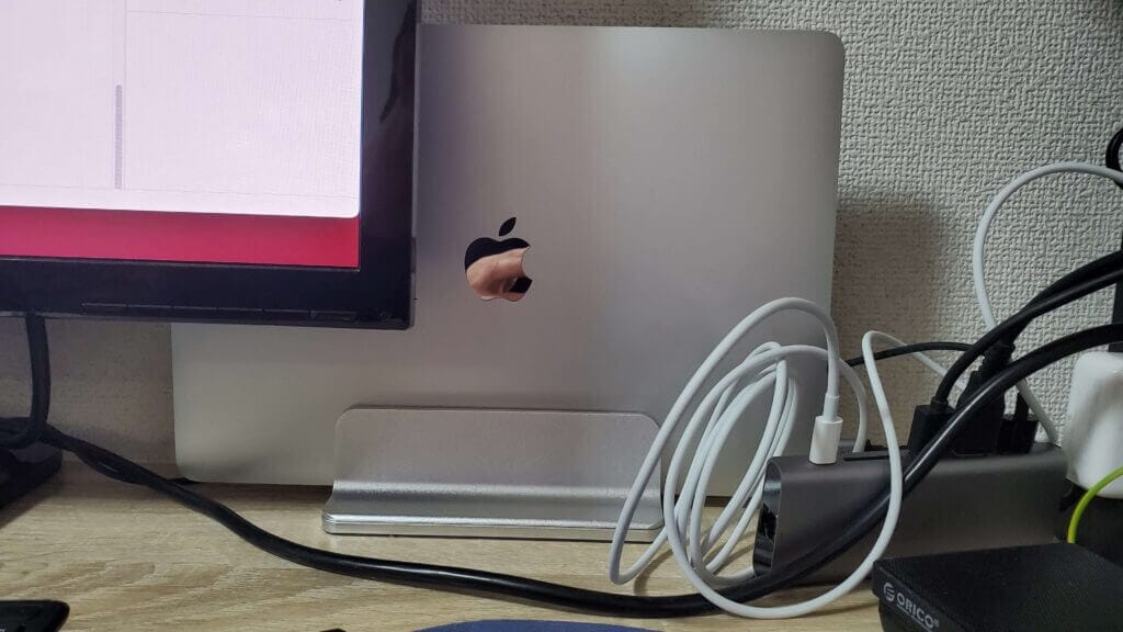 クラムシェルモードで使うに当たって、置く場所がないので立たせて使えるようにスタンドを購入しました。