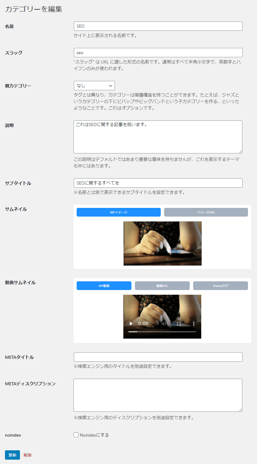 続いてはカテゴリー編集や記事編集ページでの、META設定について説明します。