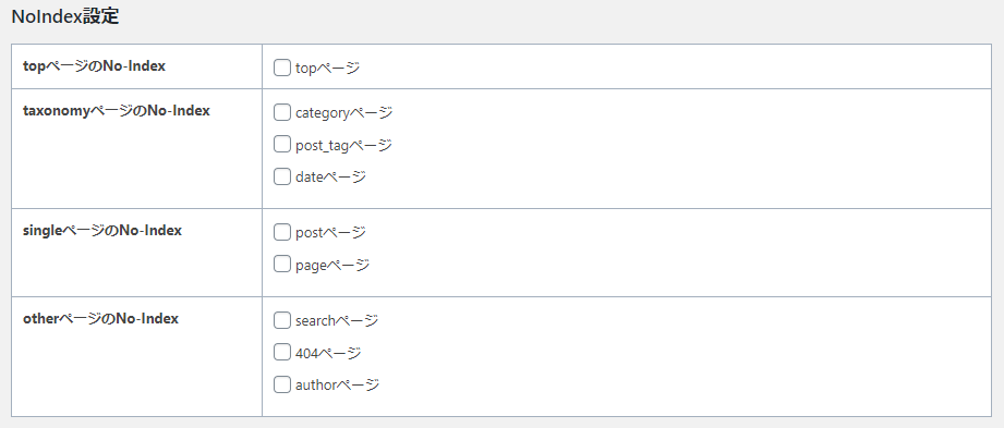 - Noindex:該当カテゴリーをNoindexする