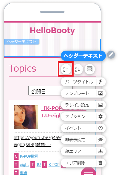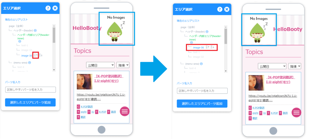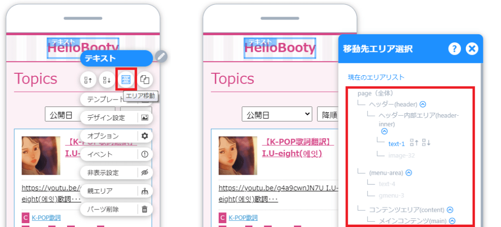 すでに追加してあるパーツやエリアは、こちらで紹介する方法で移動ができます。