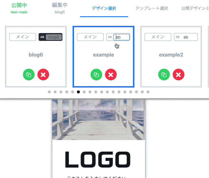サイト全体デザインをABテストできる方法です。全部で3パターン作成できます。
