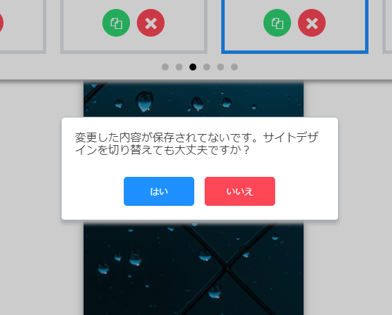 ※修正中のデザインから変更する場合、お知らせメッセージが表示されます。