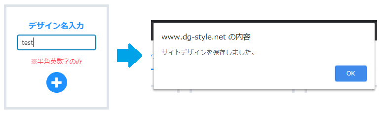 - デザイン名入力欄に「半角英数字」でデザイン名を入力