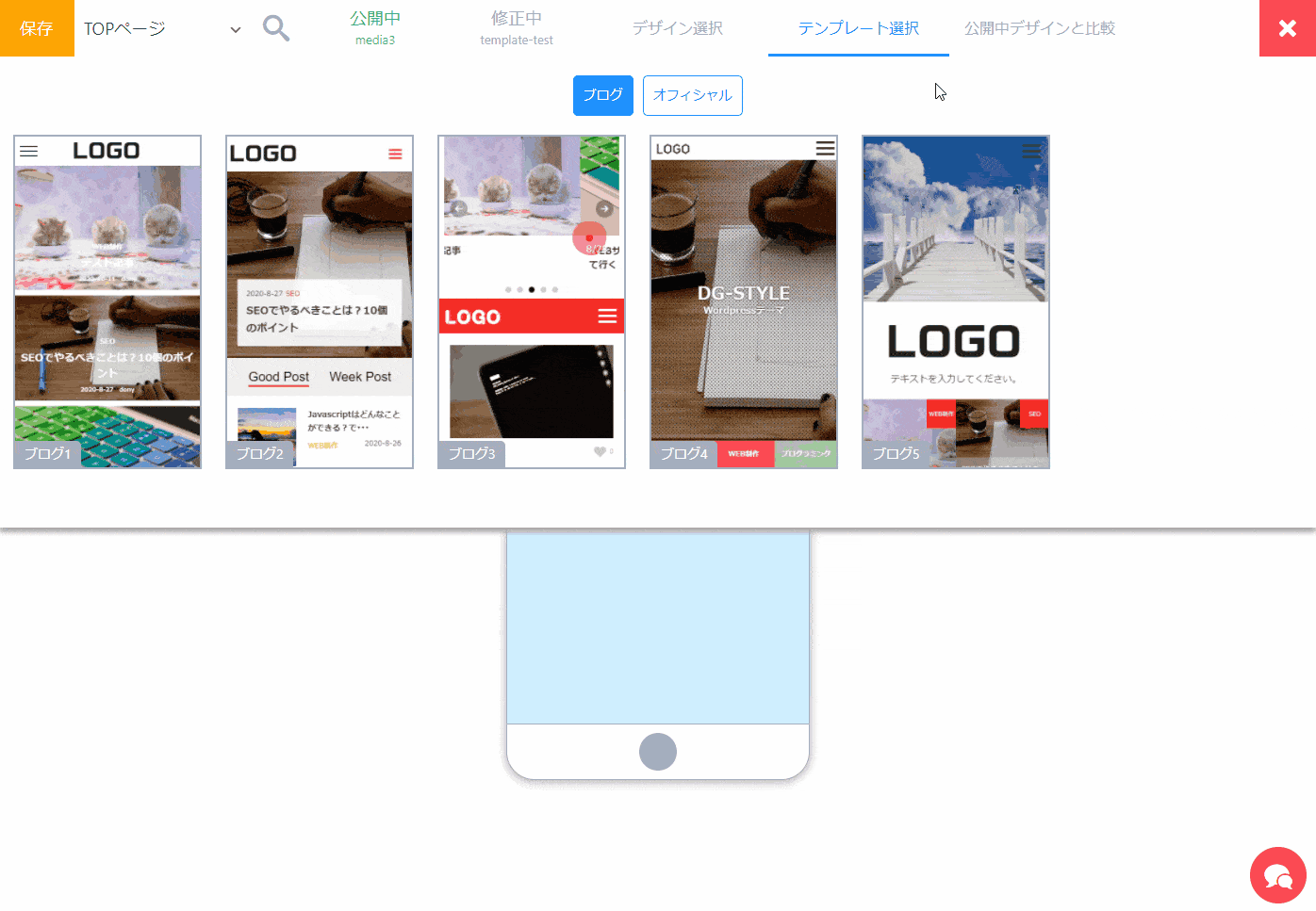 「DG-STYLE」で提供しているテンプレートの「オフィシャル5」の設定方法について説明します。オフィシャル5TOPデザ