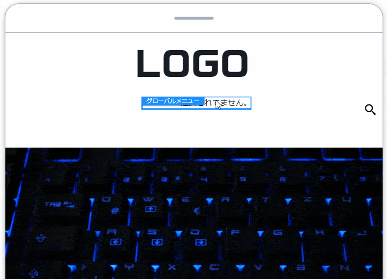 ただし、テンプレートなので、グローバルメニューやロゴなどが設定されてない状態ですので、どこを設定すればいいか説明します。