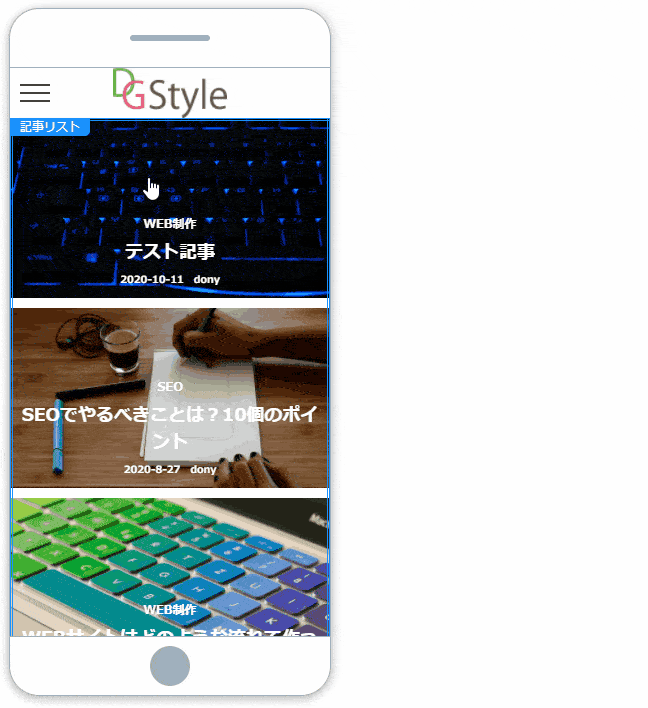 「DG-STYLE」で提供しているテンプレートの「ブログ6」の設定方法について説明します。ブログ6TOPデザイン記事を強