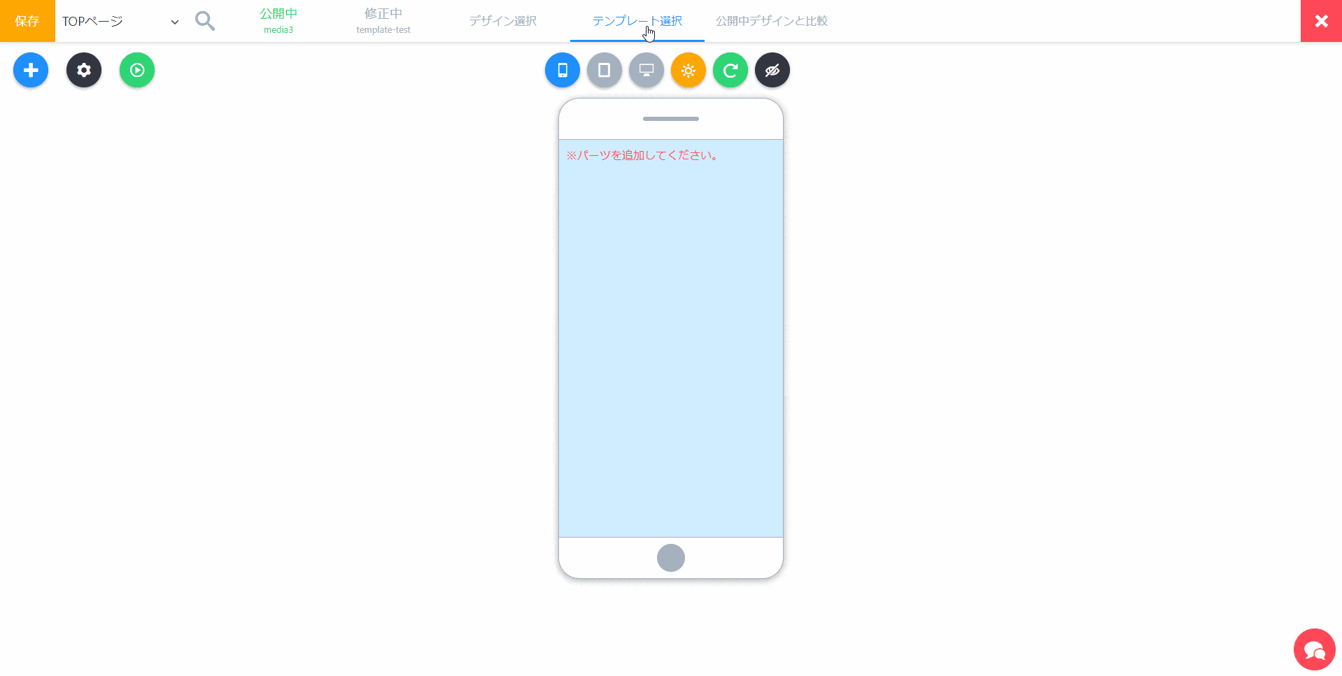 - ヘッダーメニューで「テンプレート選択」をクリック
