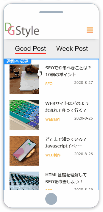 - TOPページ:メイン記事リスト、Good Post、Week Post、Category1・23、新着記事