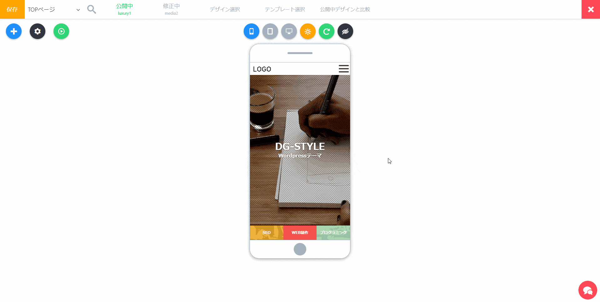 まずテンプレートを適用したいデザインを選択、もしくは新しいデザインを追加して開きます。