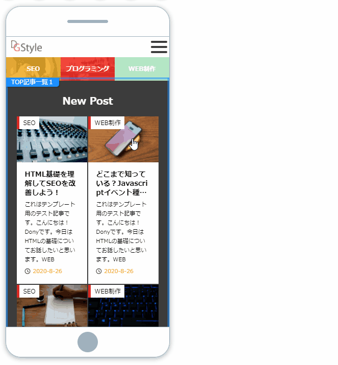 「DG-STYLE」で提供しているテンプレートの「ブログ4」の設定方法について説明します。