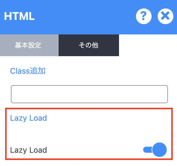 HTMLパーツをイメージのように、画面内に表示されてから内容を表示する遅延読み込み(LazyLoad)ができるように設定しました。